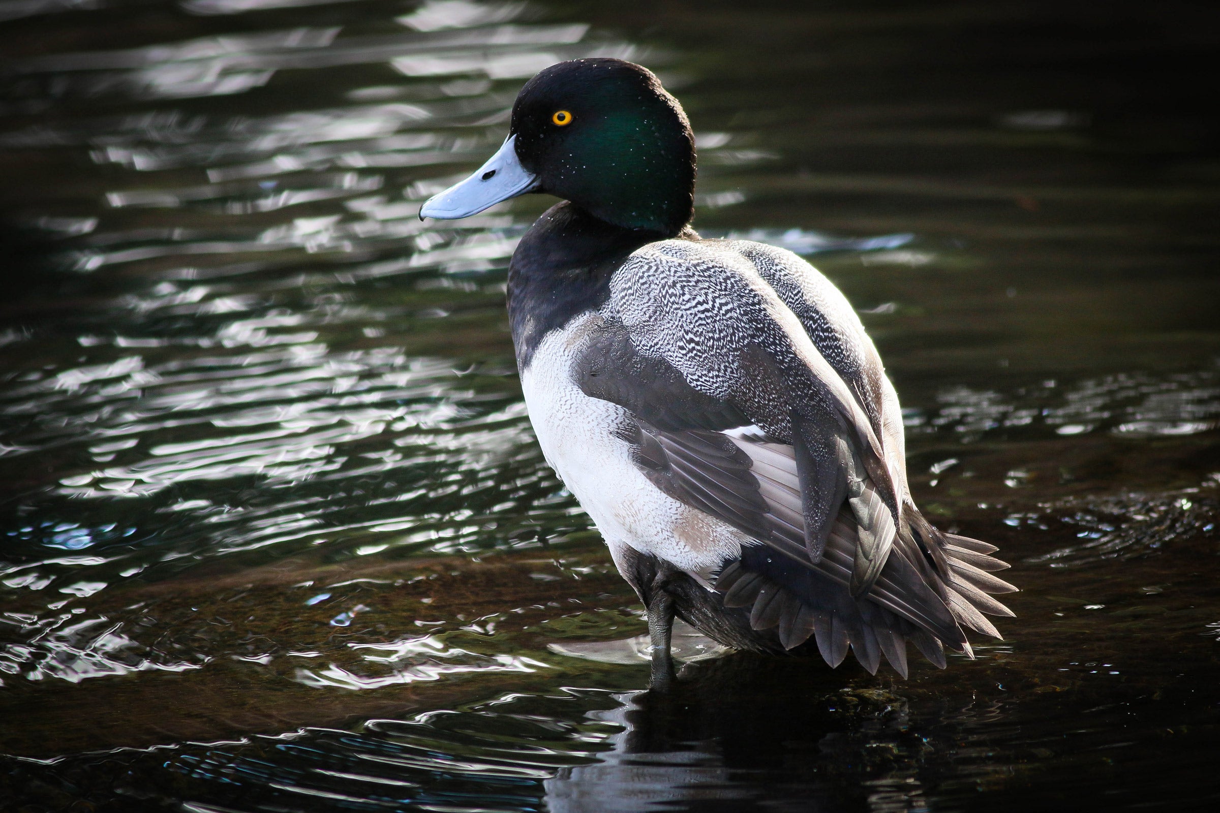 One of the most numerous and widespread diving ducks in North America, especially on inland waters. Can be very active when feeding, diving and surfacing repeatedly. In winter often seen on lakes and bays in dense flocks, numbering hundreds or even thousands, and often with no other species of ducks associated with them. The two species of scaup sometimes occur in the same places, but they tend to keep to themselves rather than mixing freely.
