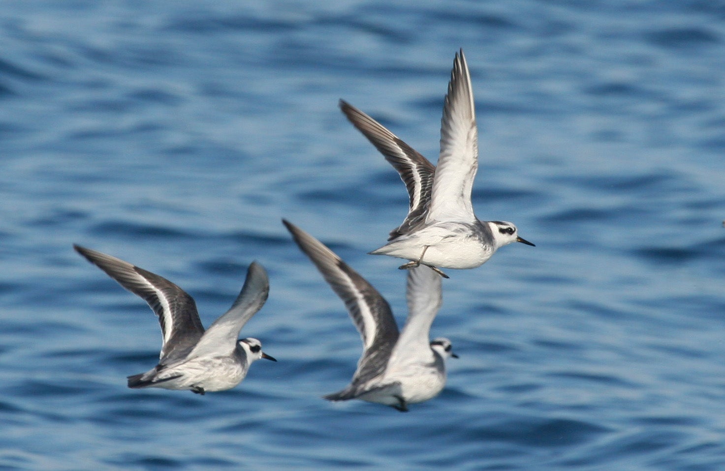 Migrates mostly offshore; rarely seen inland south of breeding grounds. A few winter off North American coast, but most apparently are well south of Equator in winter. Migrates later in fall than Red-necked Phalarope.