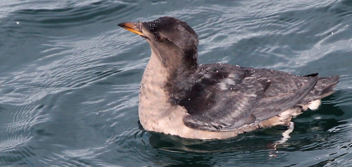 More strongly migratory than most western auks. Although summer and winter ranges overlap widely, mostly vacates northern part of breeding range in winter, and large numbers move into California waters then.