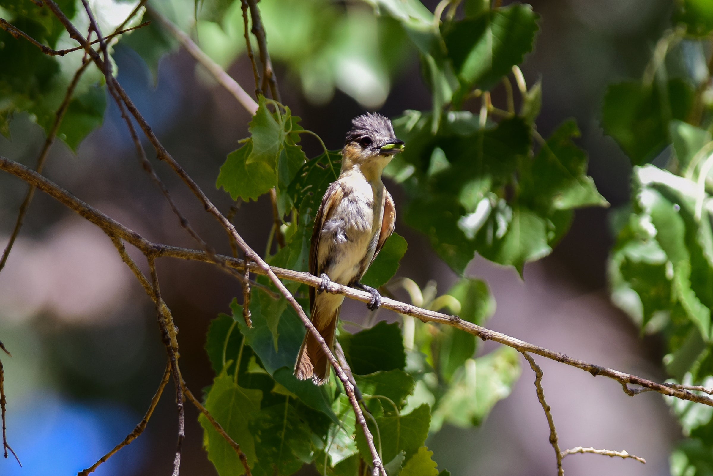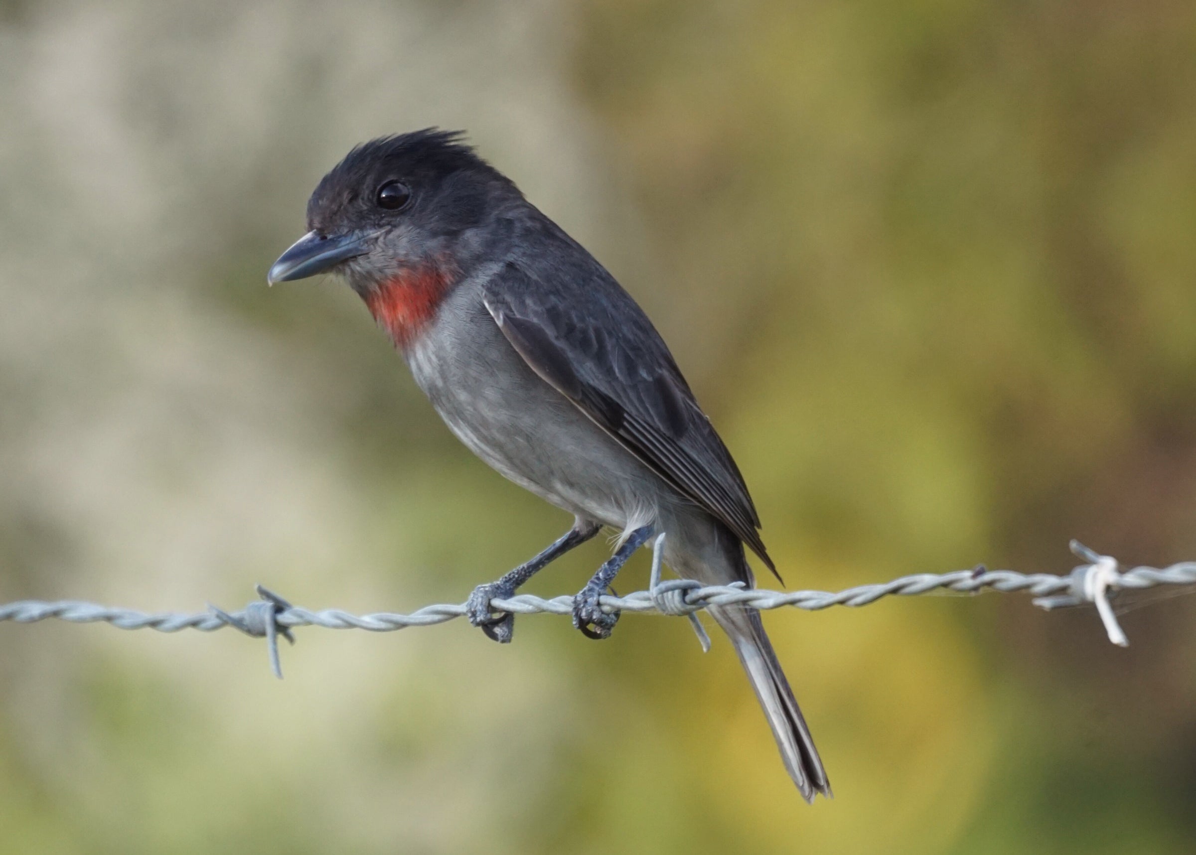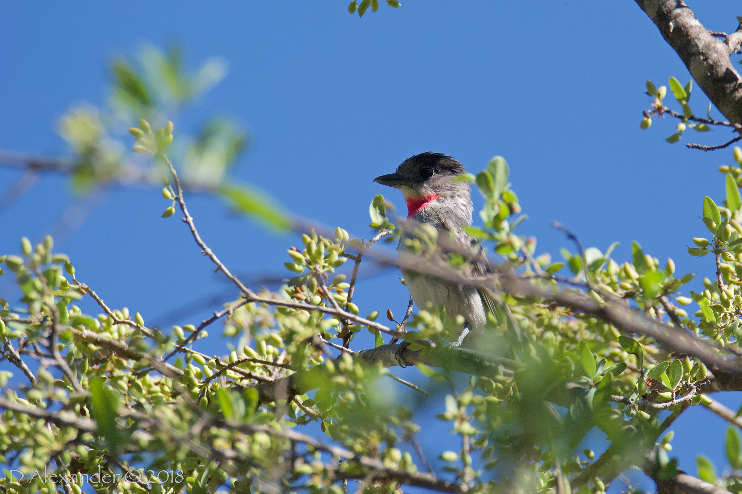 This tropical bird barely extends north of the Mexican border in summer. In our area it occurs regularly only along a few streams in southern Arizona. It is also found in southern Texas, especially in winter. Quiet and inconspicuous, it is easily overlooked as it perches high within the canopy of the trees, occasionally fluttering out to pick an insect from the foliage. Its massive, football-shaped nest, swinging at the end of a dangling branch, is often the first clue that becards are present.