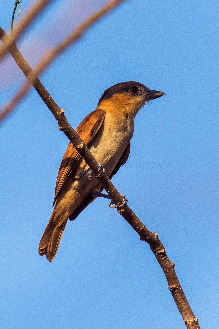 Forages mostly by watching from a perch, then making short flights out to capture insects, returning to perch to eat them. Takes most insects from foliage while hovering briefly; also catches some in mid-air. Does much of its foraging within the shady canopy of tall trees.