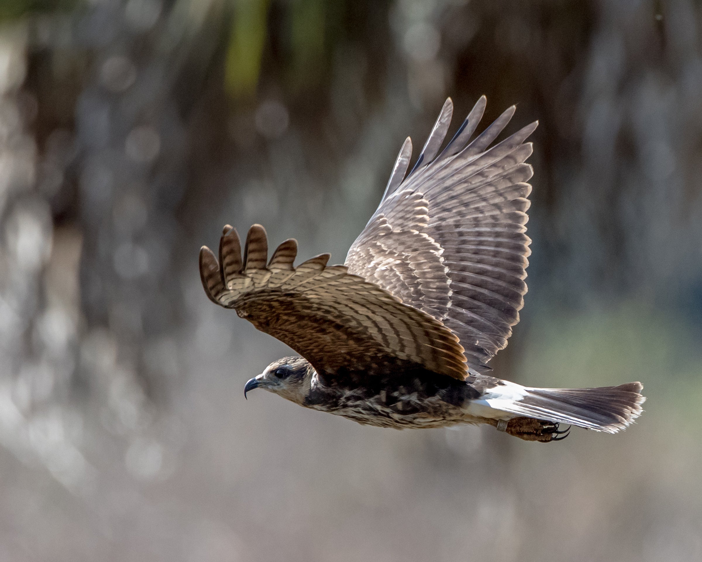 In the wide-open marshes of central Florida, this broad-winged bird glides slowly and low over the sawgrass. It has no need for fast flight, because it seeks only snails -- and only one particular sort, the apple snail. This snail is strongly affected by water levels, and drainage of wetlands has hurt populations of both the snail and the kite. The Florida race of this bird, formerly called Everglades Kite, is now endangered.