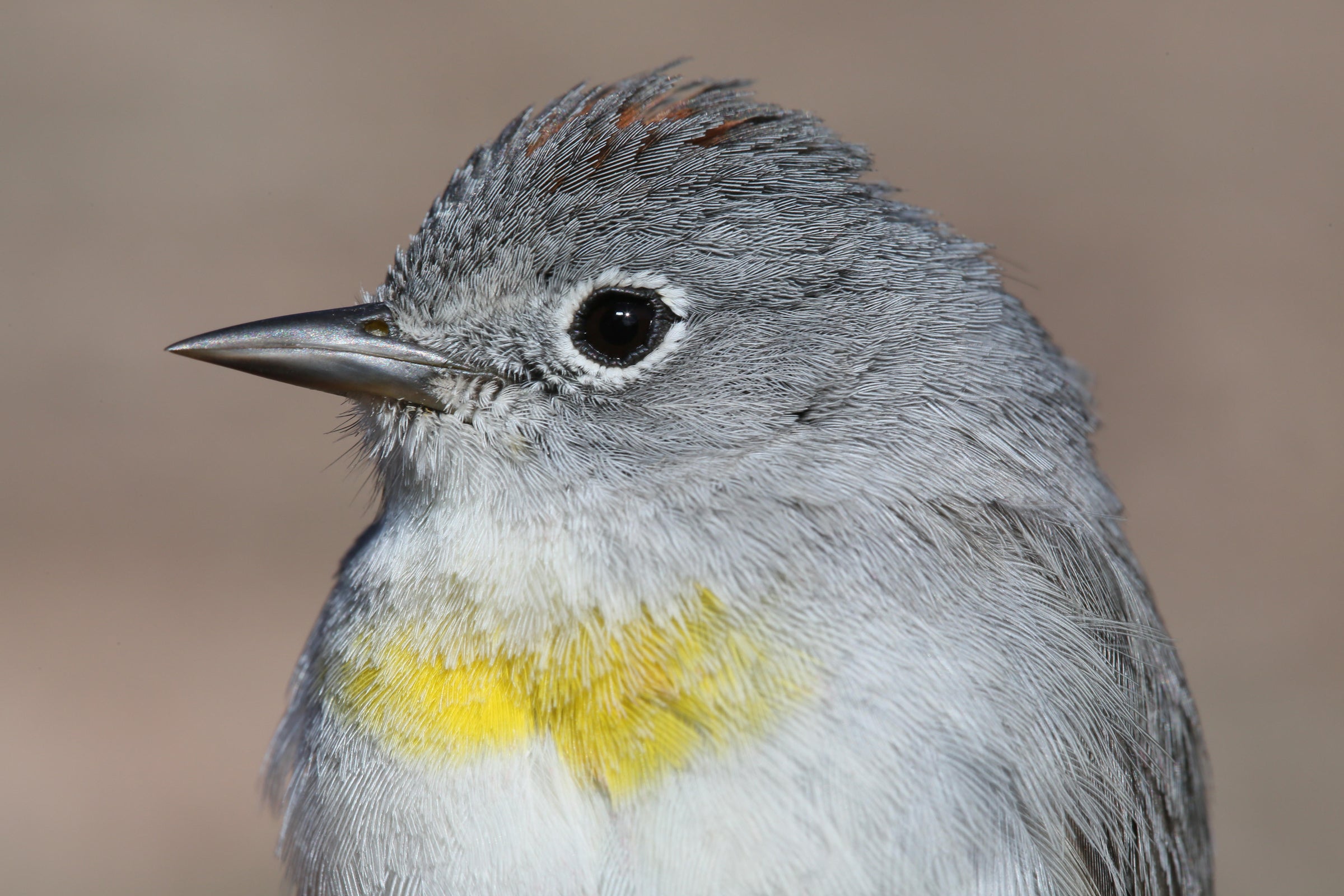 A rather plain warbler that spends the summer in brush and chaparral on dry mountainsides in the West. The dense low nature of its habitat often makes Virginia's Warbler hard to observe, but its presence is revealed by its simple trilled song and by its hard callnote, tsick. Although it is common over much of the West, its nesting behavior remains poorly known, partly because its nest is extremely difficult to find.
