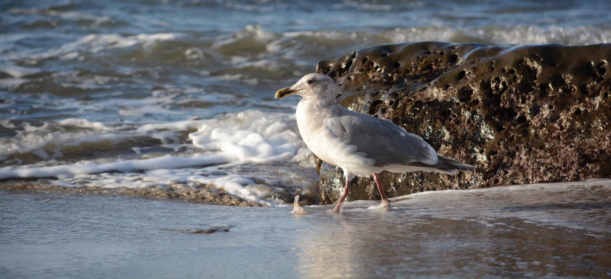 The only gull nesting along most of the Pacific Coast from Washington to Baja, this large species is common at all seasons. An opportunist, it often nests around colonies of other seabirds, where it can steal unguarded eggs or chicks. It will also nest near colonies of California sea lions, scavenging any sea lion pups that die of natural causes. At the northern end of its range it hybridizes with Glaucous-winged Gull, and many intermediate birds are seen.