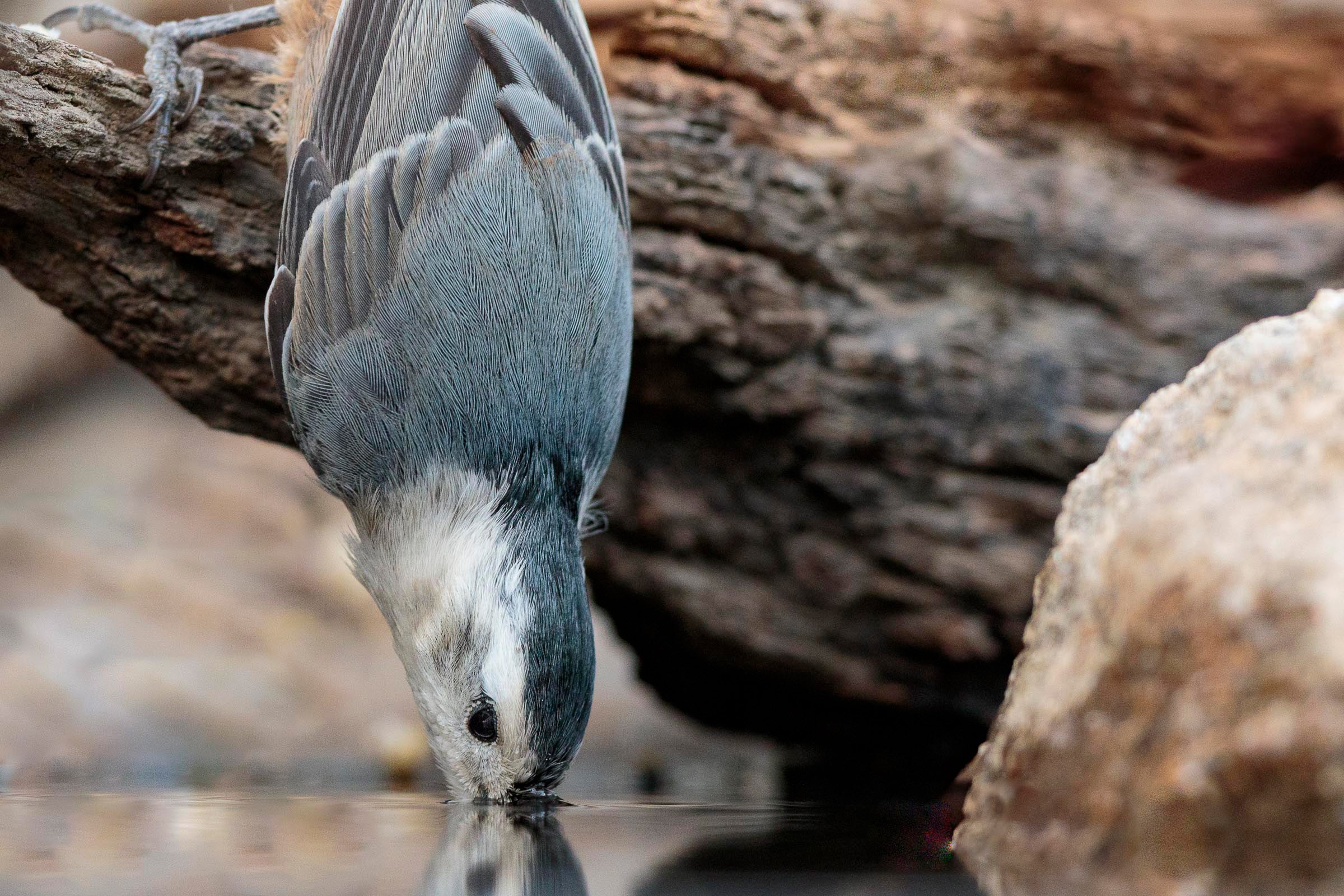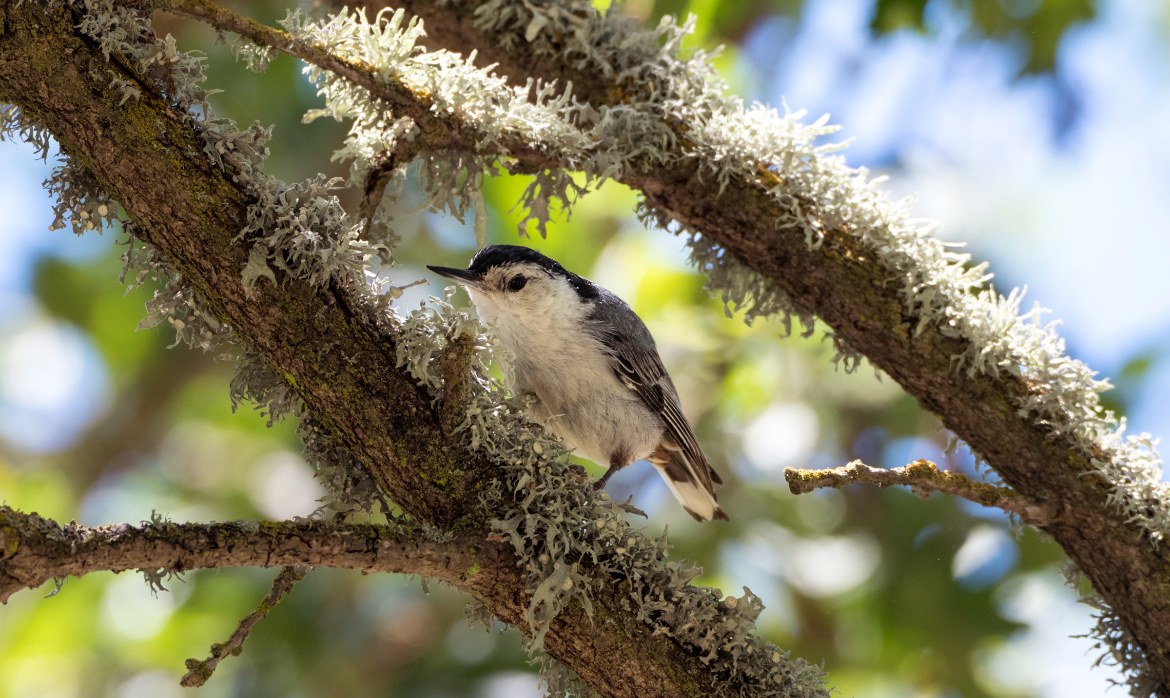 Readily attracted to bird feeders for sunflower seeds or suet, the White-breasted Nuthatch may spend much of its time industriously carrying seeds away to hide them in crevices. Its nasal calls are typical and familiar sounds of winter mornings in deciduous woods over much of North America.