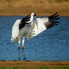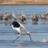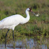 | Conservation status | Endangered. Whoopers once nested on the northern prairies south to present-day Iowa and Illinois, but they disappeared as settlers moved in. As recently as 1912, about 90 birds wintered at various points in coastal Texas and Louisiana, and there was a nonmigratory population in southwestern Louisiana as well. By 1941 the Texas wintering flock was down to only 15 birds (another six were still resident in Louisiana, but that flock soon dwindled away). After 1941, numbers very gradually rose again, helped by protection on the wintering grounds and public education against shooting; by the mid-1990s, the Texas wintering flock approached 150. Attempts to start a new flock farther west (by putting Whooper eggs under Sandhill Cranes in Idaho) failed, but in the 1990s a new project aimed to start a nonmigratory flock in Florida, using birds raised in captivity. Most recently, an ambitious project has established a new flock that summers in Wisconsin, with young birds raised and then trained to follow an ultralight aircraft to Florida for their first southward migration. |