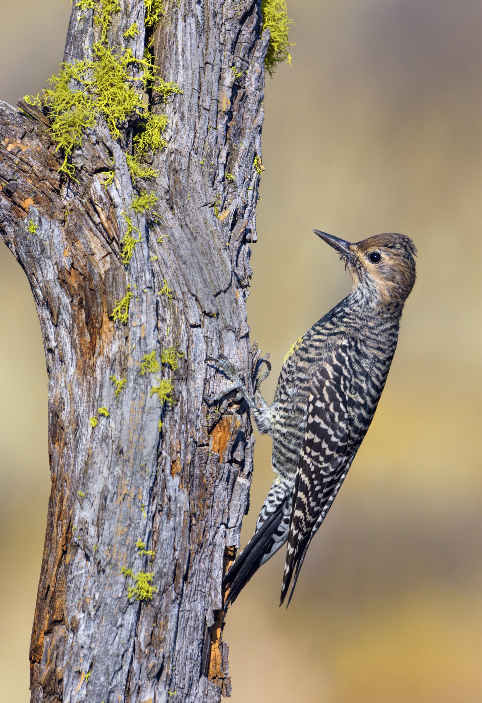 A strikingly marked woodpecker of western mountains. May be found nesting in the same aspen groves as Red-naped or Red-breasted sapsuckers, but also occurs in pure coniferous forest. Quiet and inconspicuous at most times, although its staccato drumming and nasal mewing calls may be noticeable in spring. Males and females of this woodpecker look so different that they were first described to science as two separate species.