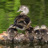 ducklings remain in nest until morning after hatching. Clinging with sharp claws and bracing with tails, young climb to cavity entrance, jump to ground. Female tends young. Two or more broods may combine. Young are tended by females for 5-6 weeks, capable of flight at about 8-9 weeks. 1 brood per year in north, often 2 in south.