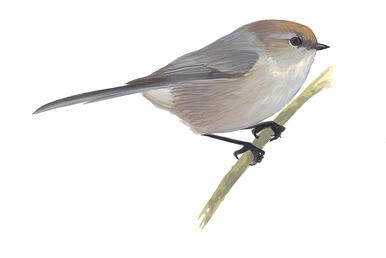 | Habitat | Chaparral, brush, parks, garden shrubs. Within its range, the Wrentit inhabits most kinds of dense low growth. Most common in chaparral, thickets of poison oak, and coastal sage scrub; also lives in streamside thickets and in shrubby areas in suburbs and city parks. Extends very locally to edge of desert. |