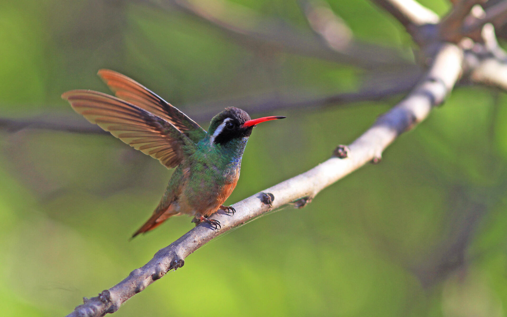 Related to the White-eared Hummingbird but resident only in Baja, this hummingbird is the most distinctive of the few Baja specialty birds. A female of this species once strayed north to Ventura, California, where it actually built a nest and laid eggs that did not hatch. Another once strayed all the way north to British Columbia.