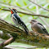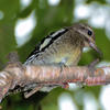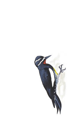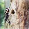Males tend to arrive on breeding grounds before females. Courtship displays include pointing bill up to show off colored throat patch; ritualized tapping at nest site. Nest site is cavity in tree, usually deciduous tree such as aspen, poplar, birch, 6-60' above ground. Often uses same tree in consecutive years, rarely same nest hole. Favors trees affected by tinder fungus, which softens heartwood while leaving outer part of trunk firm. Both sexes help excavate.