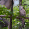 In courtship, male feeds female. Nest site is in tree, shrub, or vines, usually 4-10' above the ground, sometimes up to 20' or higher. Nest (built by both sexes) is a small, loosely-made platform of twigs and stems, with thin lining of grass, pine needles, leaves, and other materials.