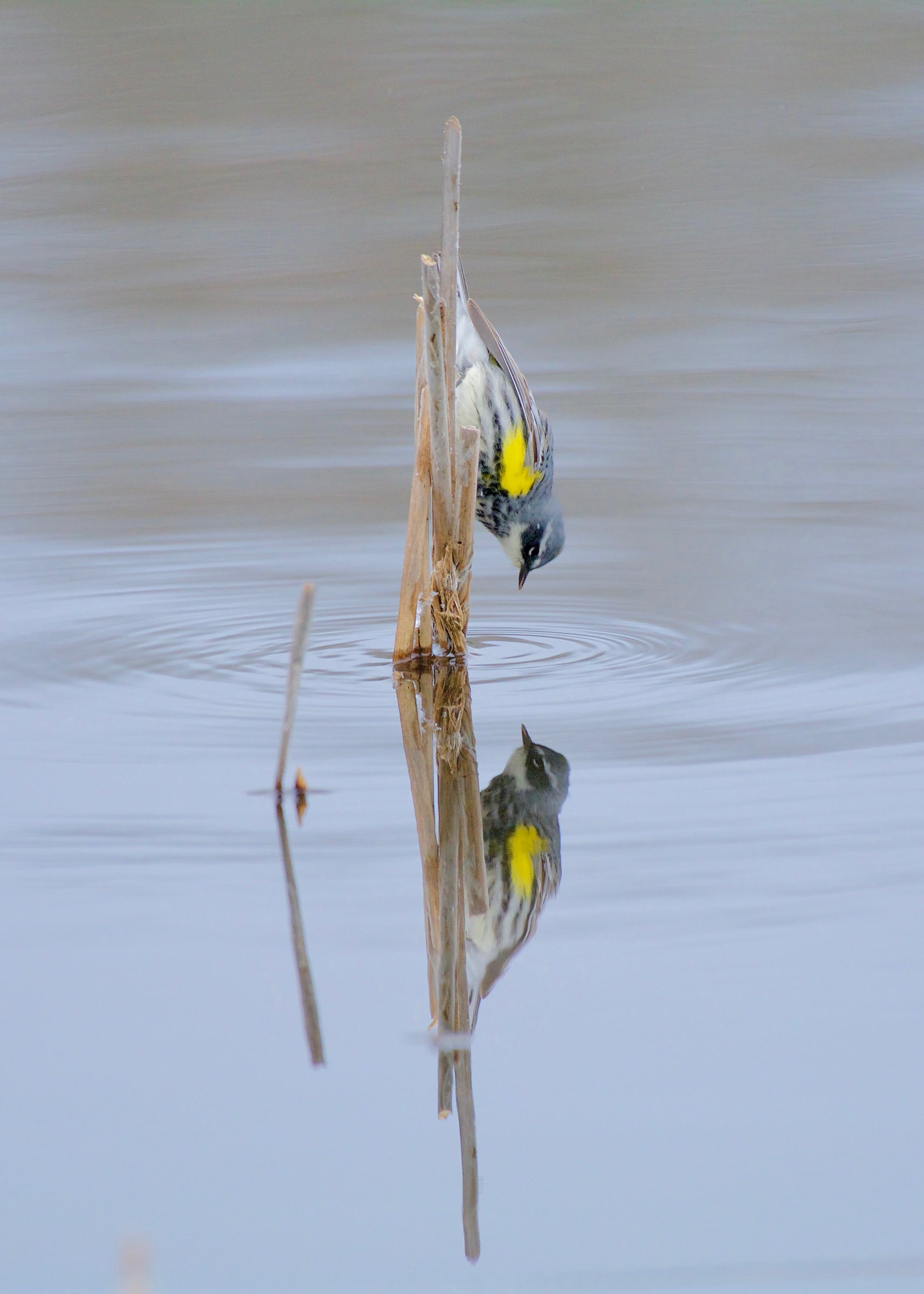 Flashing its trademark yellow rump patch as it flies away, calling check for confirmation, this is one of our best-known warblers. While most of its relatives migrate to the tropics in fall, the Yellow-rump, able to live on berries, commonly remains as far north as New England and Seattle; it is the main winter warbler in North America. Included in this species are two different-looking forms, the eastern 'Myrtle' Warbler and western 'Audubon's' Warbler.