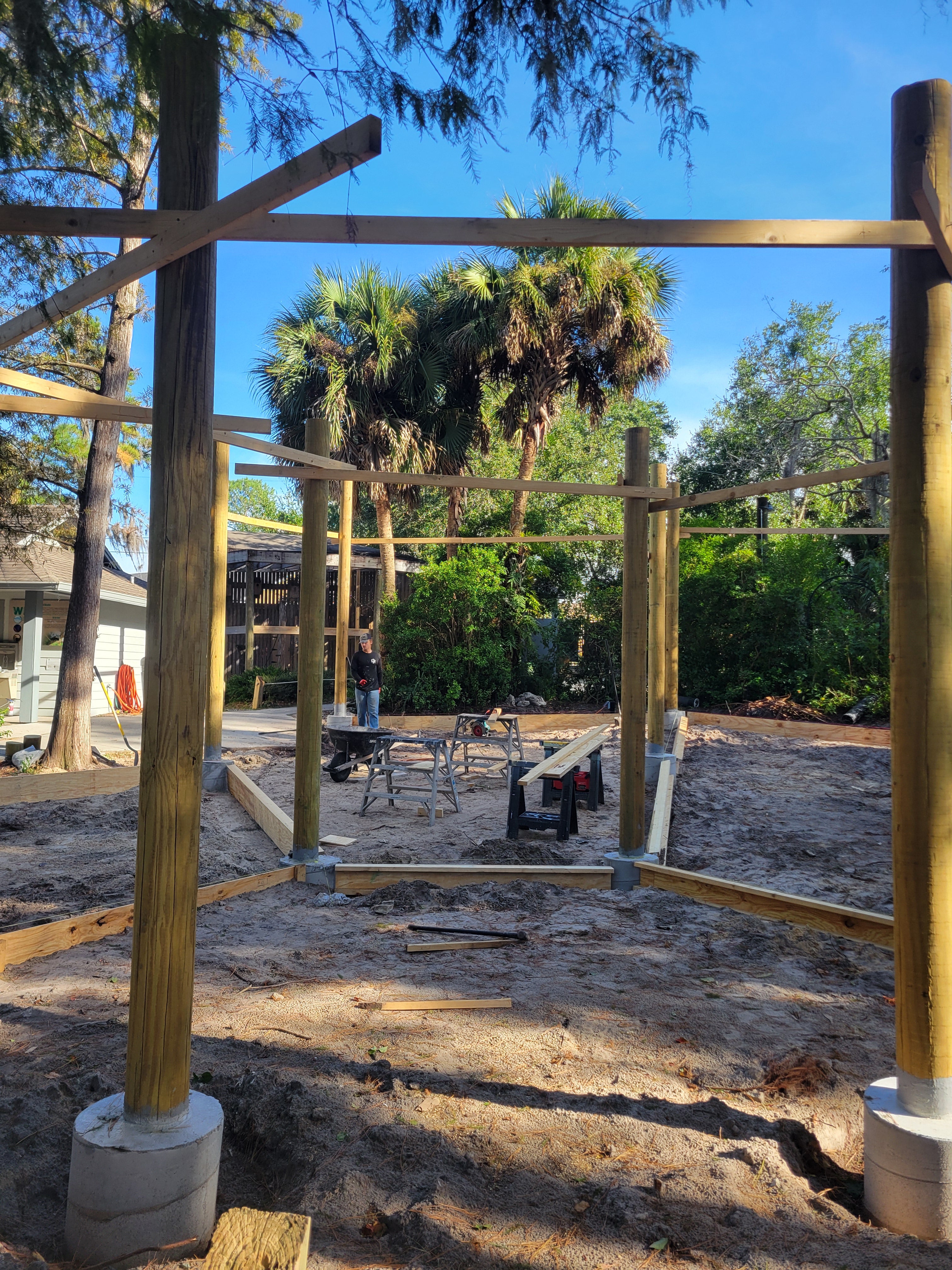 Thanks to the generosity of many donors, a new owl aviary is taking shape in Maitland! While we have been closed to the public, contractors were hard at work, and we are excited to see the progress so far. A concrete slab was poured to create a sturdy base, and wooden beams are coming together to resemble an aviary. Next, ponds built in each section will enable the owls to stay cool and hydrated throughout the hot Central Florida summer. There are even covered viewing areas so guests can stay cool, too. Native plants and updated signage will cap off this historic refresh. We anticipate a grand opening in February, and we cannot wait for the community to see the beautiful new space.