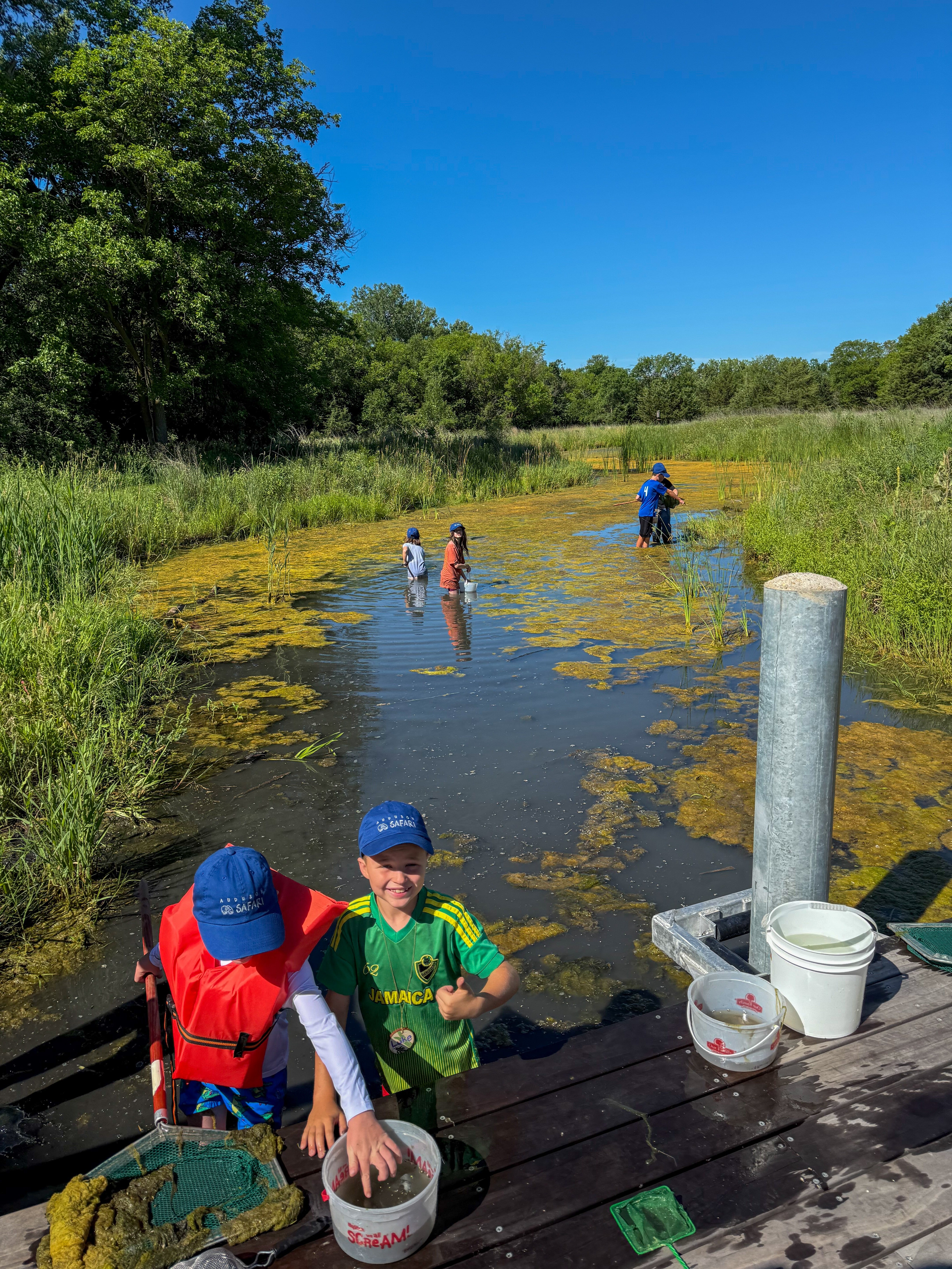 At the heart of these camps is a philosophy grounded in exploration, discovery, and inquiry-based learning. Campers are encouraged to step directly into the environment—whether by wading into wetlands with dip nets in tow, observing birds in flight with binoculars, or investigating the intricate relationships that define prairie and river ecosystems. These experiences allow young learners to ask questions, make observations, and draw their own conclusions about the world around them. It’s not uncommon to see insect guides piled up by sweep nets and muddy shoes next to seine nets on the Education patio outside the Anne Hubbard Education Center during camp. In this setting, curiosity becomes the driving force, and each day offers new opportunities for discovery.