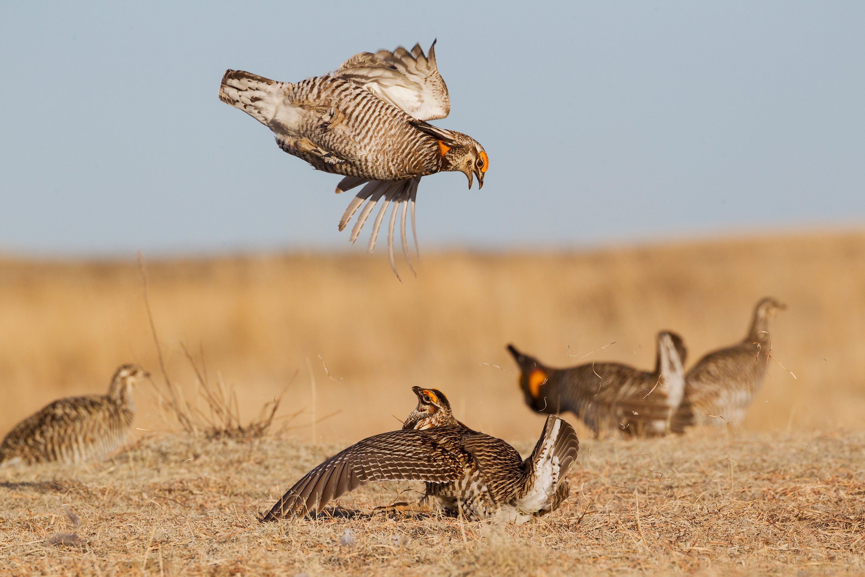 Greater Prairie-Chickens spar.
