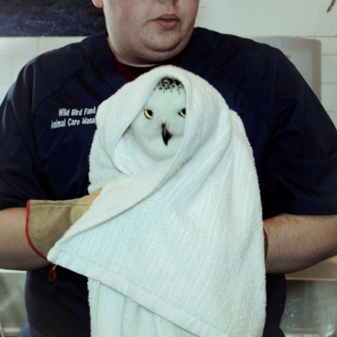 Rehab raptors usually have their antibiotics injected into their mice. But on this particular day, Hedwig refused to scarf her breakfast down whole, so the WBF staff had to use a tube to delicately feed her the meds. Video: Mike Fernandez/National Audubon Society