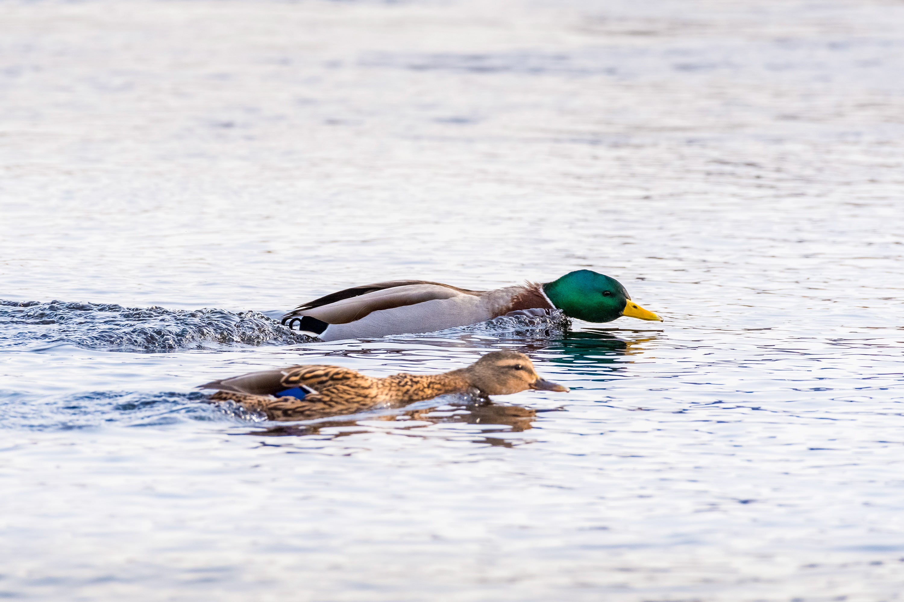 Mallard drakes take their best moves to the water, striving to stand out from the crowd with manuevers like the head-flick, nod-swim, and swim-shake. Hens encourage their suitors with head bobs and bill jabs. Other ducks add their own flair: Hooded Mergansers fan their crests and croak, while Red-breasted Mergansers favor the “salute-curtsy,” and Common Goldeneyes pull off a dramatic head-throw-kick.
