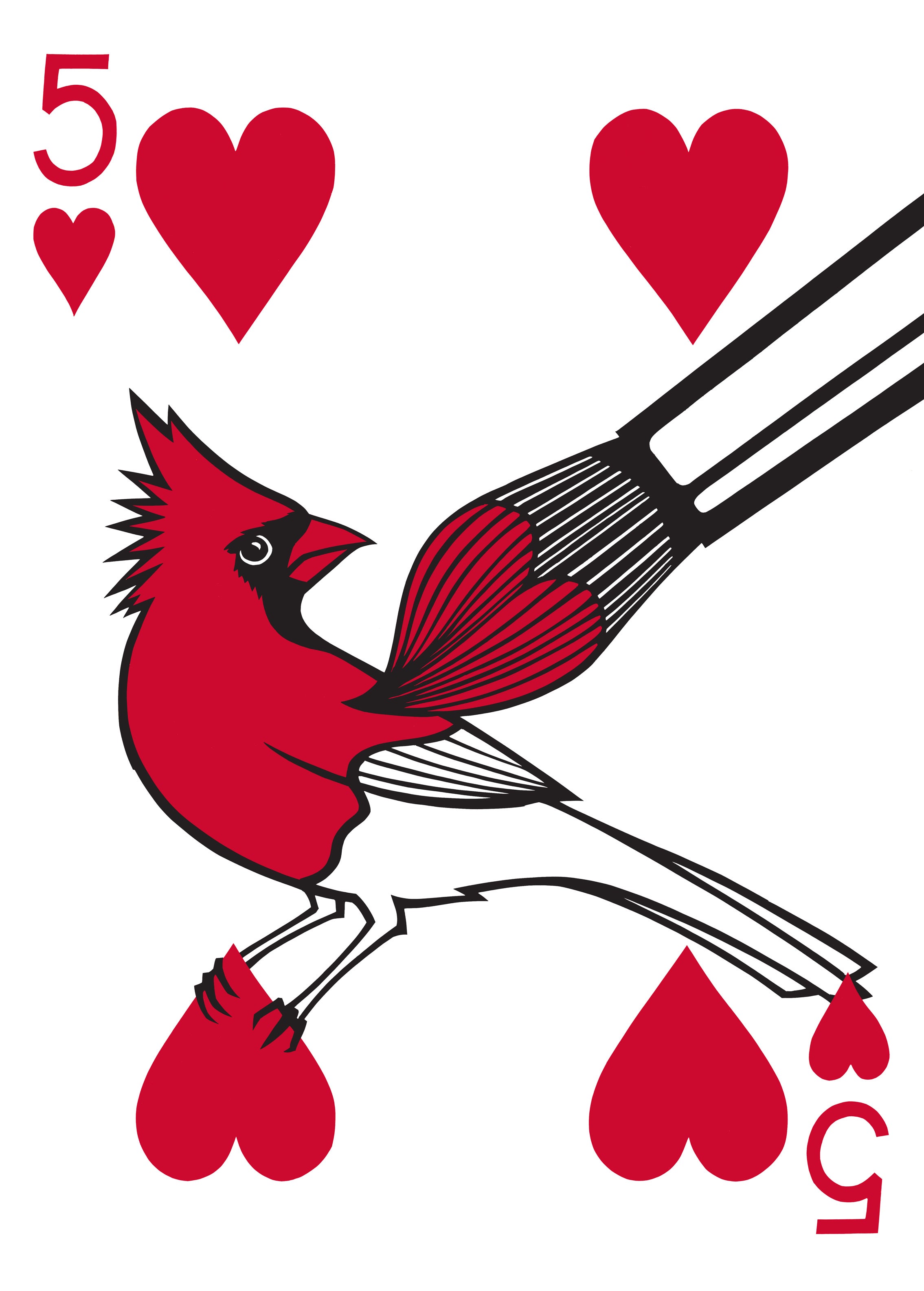 Jose lived in Raleigh, North Carolina, where the northern cardinal (one of his favorite birds) is the state bird (in addition to six other states). He decided to infuse the card with some humor by showing the bird painted by a brush.