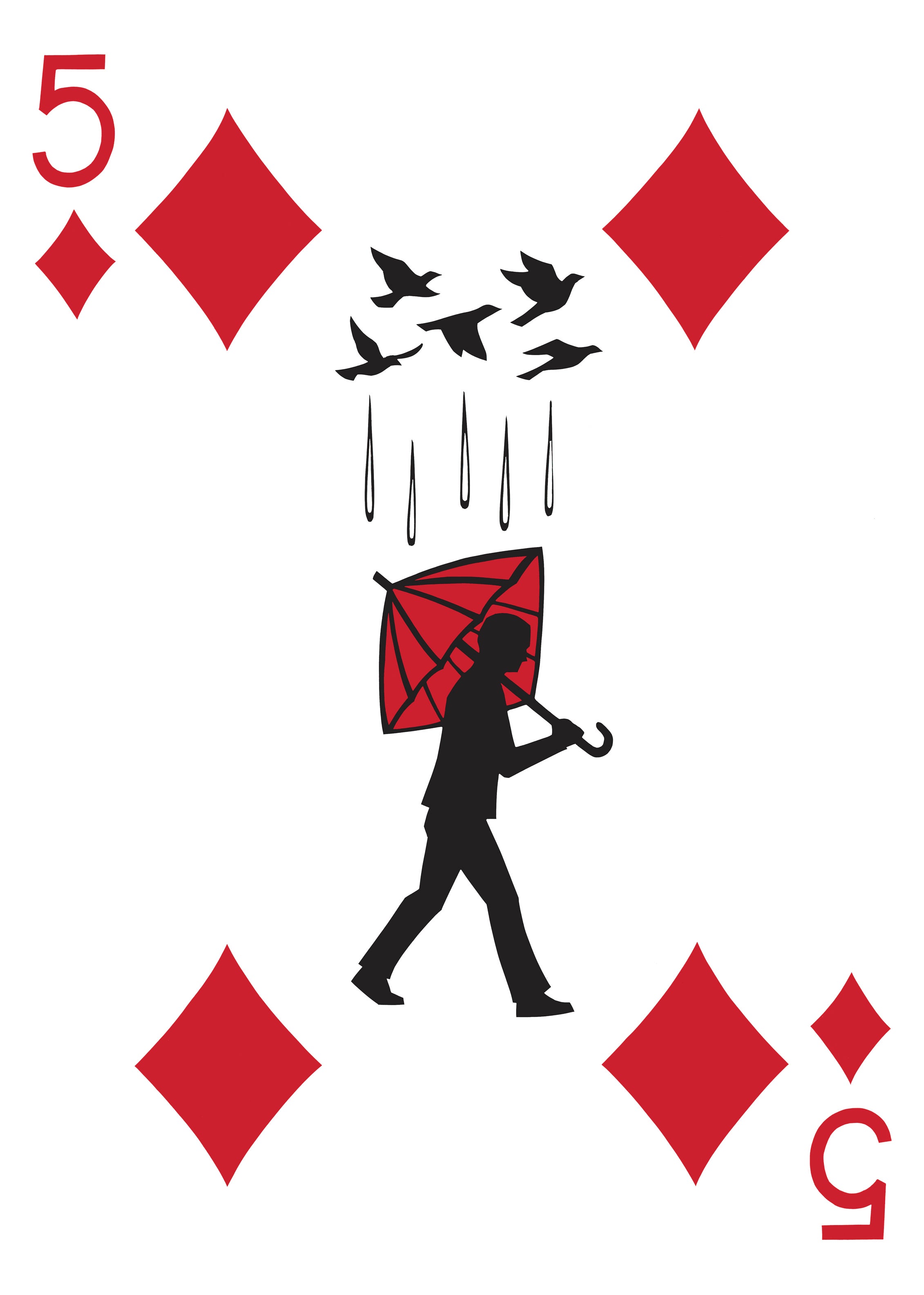 While many of the birds in the deck are real species, Jose also wanted to illustrate how humans are often attracted to birds creatively, using paper cranes and shadow puppets.