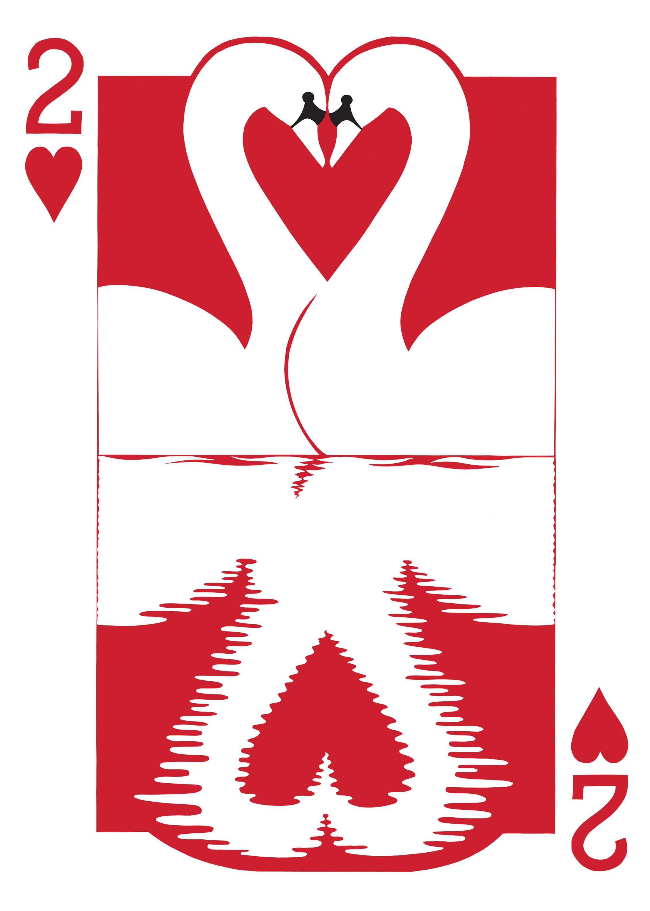 Jose says he likes to use negative space to create a suite of symbols. Here he chose the converging beaks of two mute swans.