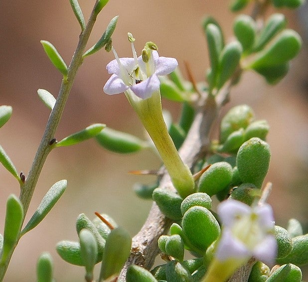 Use LocationAlso known as Anderson Wolfberry and Water Jacket, this thorny shrub typically grows to 5 by 5 feet in size. Its thick foliage makes it a good cover plant, and its bright red berries are prized by birds. Hummingbirds are also known to visit the whitish-lavender, tubular flowers it produces. Accustomed to desert conditions, this shrub grows best in full sun and in dry, gravelly soils.