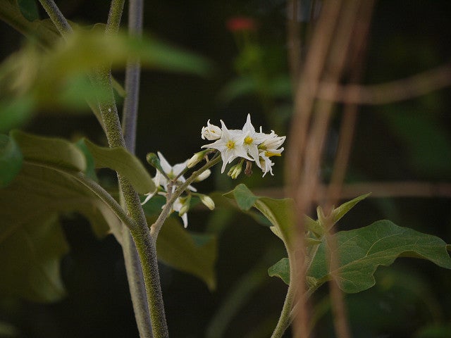 Use LocationTurkey-Berry, also called Prickly Nightshade, Shoo-Shoo Bush, and Pea Eggplant, is a bushy and spiny perennial that reaches 6 to 9 feet in height in moist, fertile soil and full sun. It produces white, tubular flowers followed by clusters of small, green berries that resemble peas before maturing to yellow.
