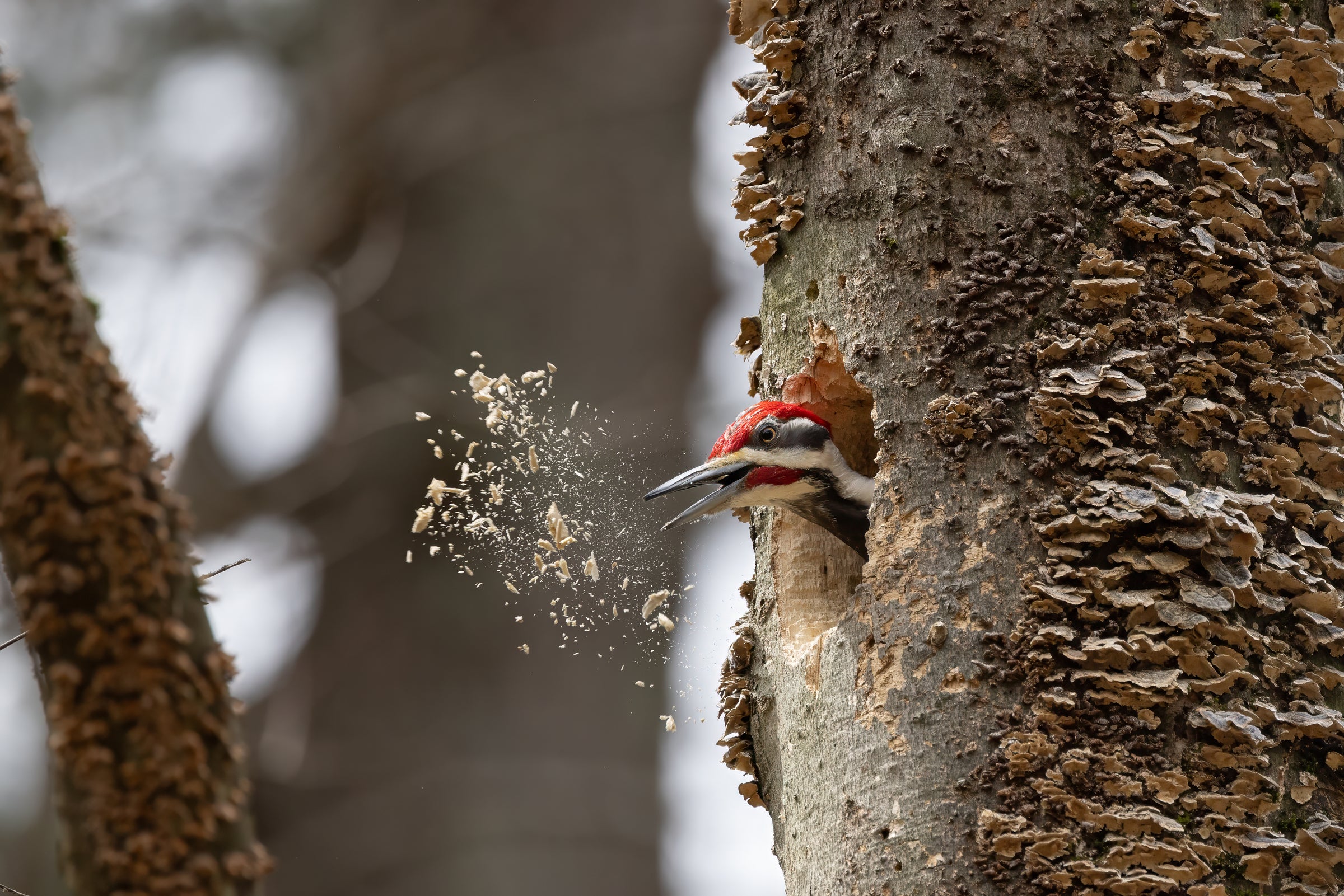 Male Scarlet Tanagers seem almost too bright and exotic for northeastern woodlands. These birds are fairly common in oak forests in summer, but they often remain out of sight as they forage in the leafy upper branches. Sometimes in spring, when the Scarlet Tanagers have just arrived from their winter home in South America, a late freeze will force them out in the open as they search for insects on roadsides or in gardens.