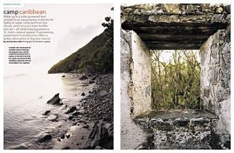 Wake up in a solar-powered tent, snorkel in an aquamarine underworld, bathe in water collected from the clouds, and turn your beer bottles into art—all while helping preserve St. John’s natural appeal. A pioneering experiment in ecotourism offers a better alternative to big-box resorts.