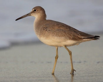 A willet seems the blandest of the beach’s inhabitants. Mostly a dull gray, it is stolid and almost awkward compared to its minute, intense companion. But let a threat, real or imagined, jolt the willet into flight and it’s instantly transformed into a dazzling apparition. The wings flare open to reveal long, jagged white stripes, each like a bolt of lightning flashing across a bleak sky. The revelation always makes my day.