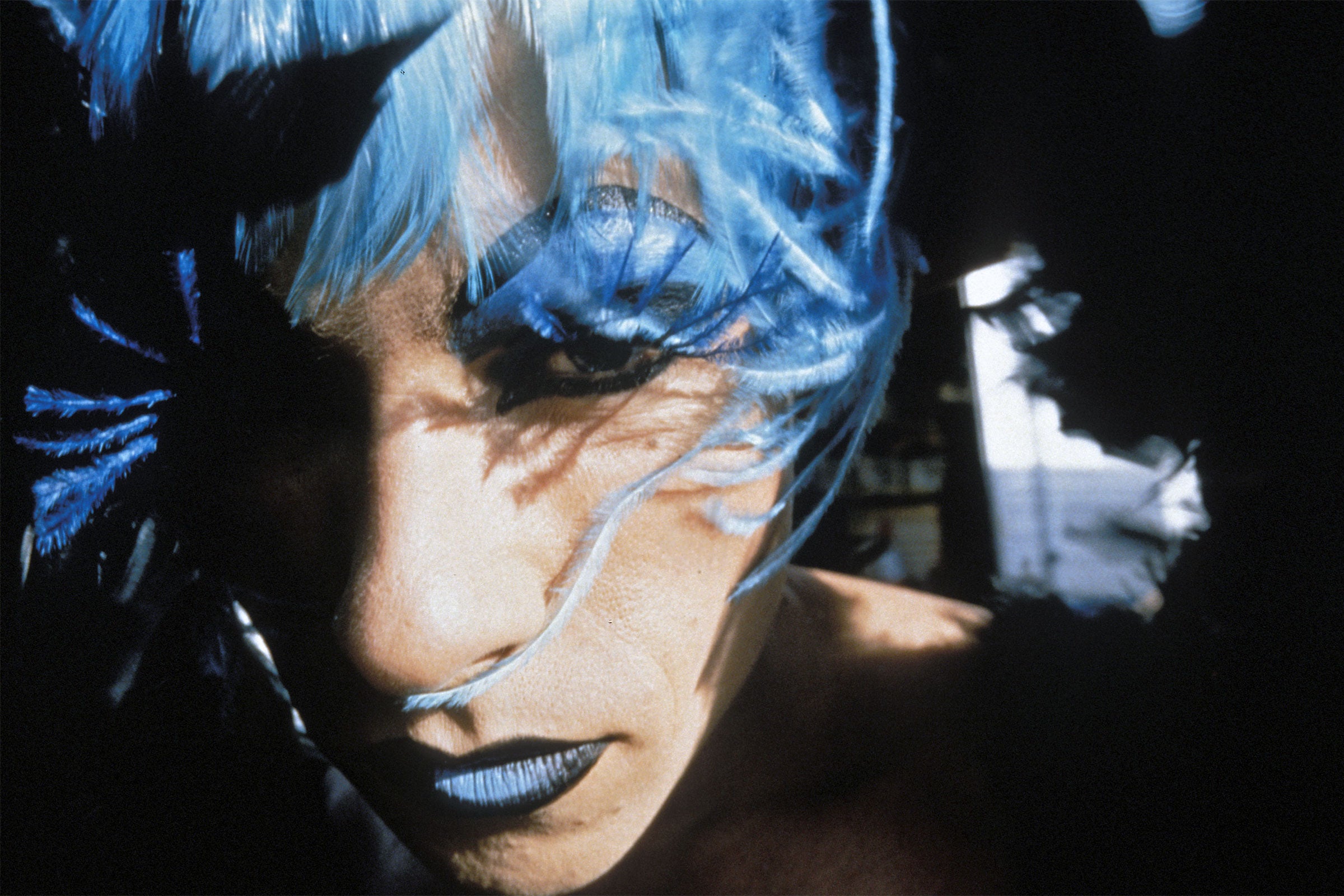 Nearly two decades later, more films with drag artist protagonists reached theaters. Priscilla, Queen of the Desert (1994), featured Mitzi Del Bra (Hugo Weaving), Bernadette Bassenger (Terrence Stamp), and Felicia Jollygoodfellow (Guy Pearce) on a roadtrip across the Australian Outback to perform a drag show at a casino in Alice Springs. In the culminating lip sync of the film, the trio perform CeCe Peniston’s “Finally” with elaborate costume changes, including an astounding Emu tribute where the performers don towering black headpieces accentuated with sky blue gloves and lips. Director and writer Stephan Elliot began writing the film after witnessing a plume of feathers break from a drag queen’s headdress at the Sydney Mardi Gras parade, which he’s claimed bounced down the pavement like a tumbleweed in a Sergio Leone western. The independent film became a cult classic and won an Academy Award in 1995 for best costume design. And while no bird drag is present in The Birdcage (1996) starring the late Robin Williams, the movie’s title (and the name of the drag club in the film) implies all who visit and perform in the venue are either caged or spectators.