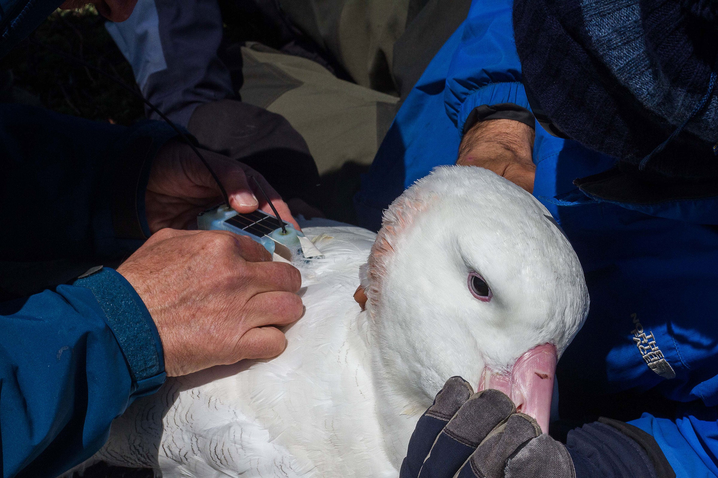 To test their seabird-spying scheme, Weimerskirch’s team needed avian participants. They visited Crozet, Kerguelen, and Amsterdam Islands in the southern Indian Ocean and, after capturing individual birds, attached electronic loggers to the backs of 169 Wandering and Amsterdam Albatross. They planned to remove the loggers when the adults returned to the islands after one foraging trip; any tagged juveniles shed theirs through molting.