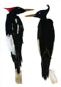 Imperial woodpeckers (male on left, Museum specimens, UMMZ 29216 on left, 29217, collected in Durango, Mexico in 1898). Credit: Phil Myers (photographer, copyright holder), Museum of Zoology, University of Michigan.