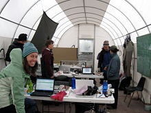 After nearly two weeks at Toolik Field Station in Alaska, I'm getting ready for our departure tomorrow morning at 6am. My bags are packed, I've just completed participating in what I'm pretty sure is the northernmost Michael Jackson tribute dance, and I spent the day in the field at a thermokarst--a large area of permafrost that has melted, causing a huge amount of land to slump, forming a gully. I'm sitting in the dining hall, where about two dozen journalists and scientists are playing card games, chatting, reading, poking around on the computer, or out on the deck observing a red fox. Did I mention that it's 11:30 at night? My last activity before bed is to join a group going out to look at lapland longspur chicks at 12:15am. It's light all the time, so you can pack a lot into a day. Now that I have a better idea of life at Toolik, here's a look at camp, and what folks do for entertainment: