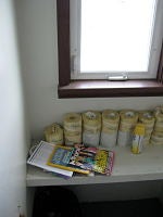 "The Tower," aka, three-seater outhouses. Don't worry, there are partitions between the toilets. And as you can see from the photo below, a nice selection of reading material...even if some of it is magazines from 2003.