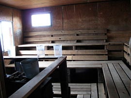 The sauna is fired up five nights a week. It's a popular place, especially because showers are only allowed twice a week. Most folks work up a sweat, then jump in the lake. There's a big vat of Dr. Bronner's biodegradable soap out on the deck for all to use.