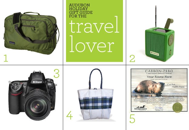 No traveler leaves home without a good camera at the ready. Before the voyager in your life embarks on another journey, give this adventurer a great way to share his stories: a camera. On the lower end, price-wise, try the Canon PowerShot G12. If you’re willing to shell out more dough, pick up the Nikon D700. For plenty of other options, including those along the entire price spectrum, look to our Audubon Guide to Cameras.