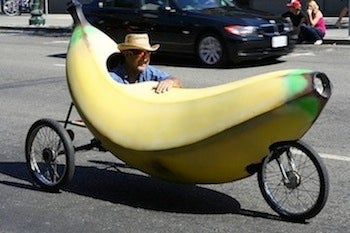How does it work? Banana leaves—and peels?—are put into something not unlike a pressure cooker. Chemicals (eek) are added, and the mixture is heated in cycles. Eventually, you’re left with a fine powder, each pound of which can produce 100 pounds of dashboard. Seems like the hemp mobile may have some competition, suddenly, as auto manufacturers are already testing out those banana bumpers.