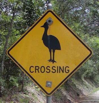 Cassowary crossing, Queensland. (Photo courtes of djpmapleferryman, via Wikimedia Commons)