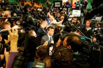 Muhammed Nasheed arrived at the packed stadium and received a standing ovation, and then led the crowd in a chant of "Three--Five--Oh!" The handsome young president of the Maldives has become one of the media stars of the COP15 Summit, speaking out on behalf of his small island nation off the coast of Sri Lanka, which is threatened by climate change. Up until 2008, the Maldives was a dictatorship. Muhammed Nasheed is the first president in the small nation's history. He spent 5 years in prison after being jailed by his political enemies, and led the country into a nonviolent revolution last fall. Speaking about his time in prison, Nasheed said, "I was more alone than you can imagine. I started to believe the doubters."
