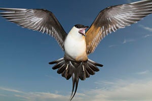 Today, in round four, a peregrine falcon and a parasitic jaeger, both in flight, compete for your votes. Which do you like best?