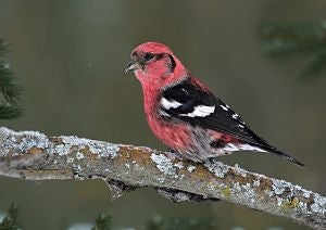 C, 3,000. According to Cornell’s All About Birds database, these birds, which live in coniferous forests, feed on thousands of conifer seeds each day, especially those from spruce and tamarack.