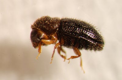 The coffee berry borer beetle (Hypothenemus hampeii) is coffee's primary insect pest and is consumed by native birds. Photo by Daniel Karp / Stanford University |