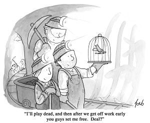 ![]() “I’ll play dead, and then after we get off work early, you guys set me free. Deal?” |