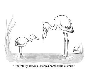 ![]() “I’m totally serious. Babies come from a stork.” |