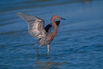 Reddish Egret: Populations of these large, strictly coastal egrets have dwindled due to habitat loss and disturbance. As specialized residents of coastal environments, they have nowhere else to go if their feeding and nesting grounds are fouled by oil. [Audubon] Photo: James C. Leupold, FWS