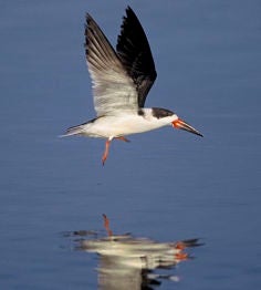 Black Skimmer: Along with other beach-nesting terns and gulls, like the least tern and royal tern, black skimmers nest and roost in groups on barrier islands and beaches. They feed on fish and other marine life. Roosting and nesting on the sand and plunging into the water to fish, they are extremely vulnerable oil on the surface or washing ashore. [Audubon] Photo: Gary Kramer, FWS