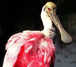 Roseate Spoonbill: Like many herons and egrets, the roseate spoonbill feeds in marshes and along the coast and nests in large colonies that will be vulnerable if oil comes ashore. [Audubon] Photo: NASA