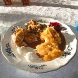 | Pass the petri broth? Cultured turkey could be the eco-friendly dinner of the future. Photos: (left) Dustin Day, (right) Alcinoe, via wikimedia commons. |