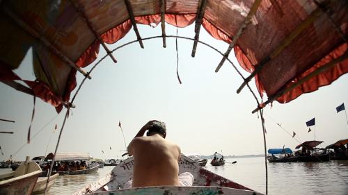 Perhaps the most powerful story is Singh’s, whose travels up the Ganges create a natural narrative that develops as he moves upstream. His journey ends near the river’s source, where glaciers teeter on a mountaintop. Singh points out that if those disappear, the river will too.